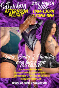 Come and join our Saturday Afternoon Delight party... with three amazing ladies - Billie, Emily & Chanella - for a fun afternoon gangbang party.