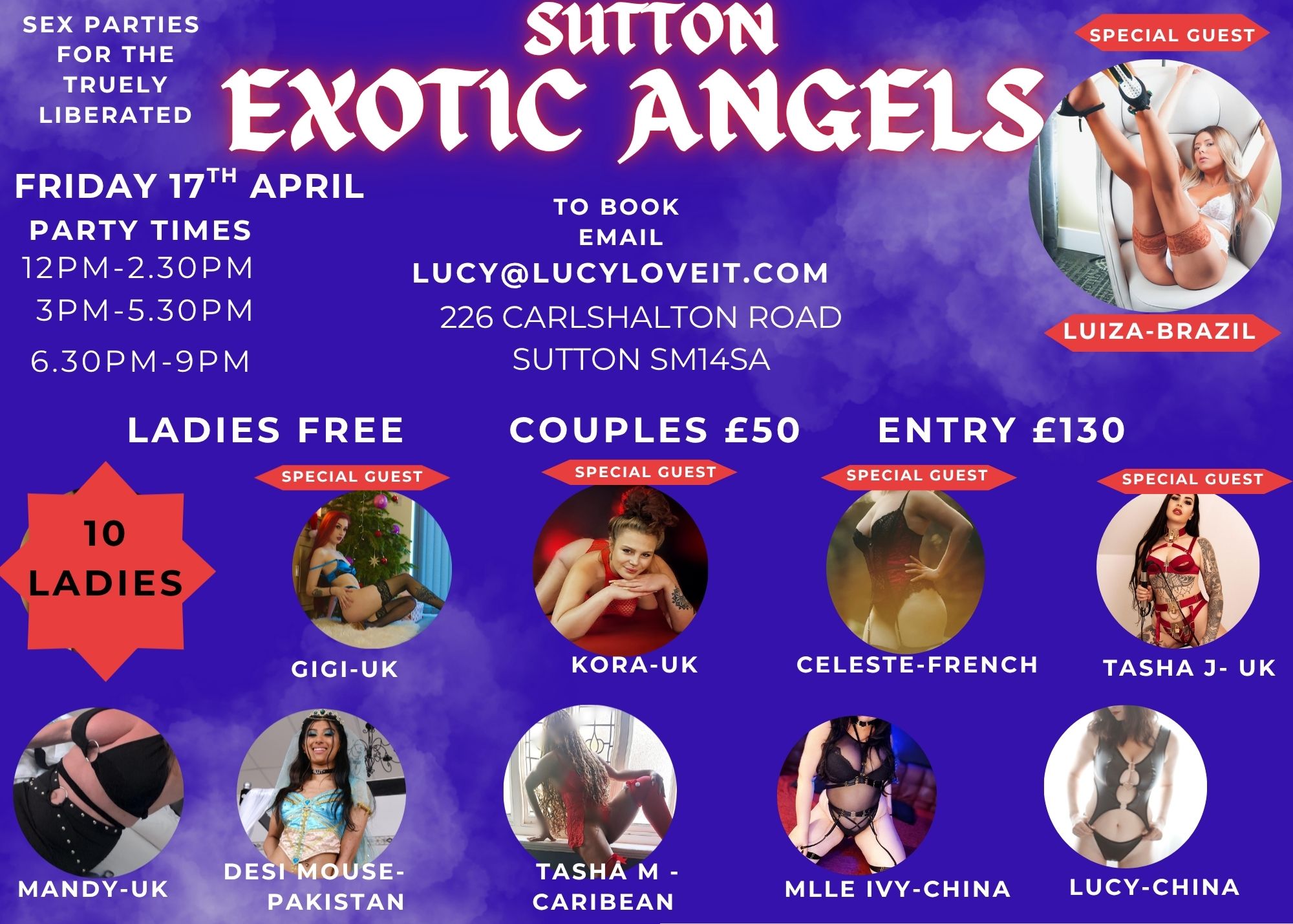 Many stunning fun ladies attending. 12-2.30pm, 3-5.30pm, 6.30-9pm Contribution per party £130 Single guy (confirmed bookings) £50 couples Free for single ladies. For more information https://lucyloveit.com/sutton-exotic-angels OR To book please email Lucy@LucyLoveit.com OR […]