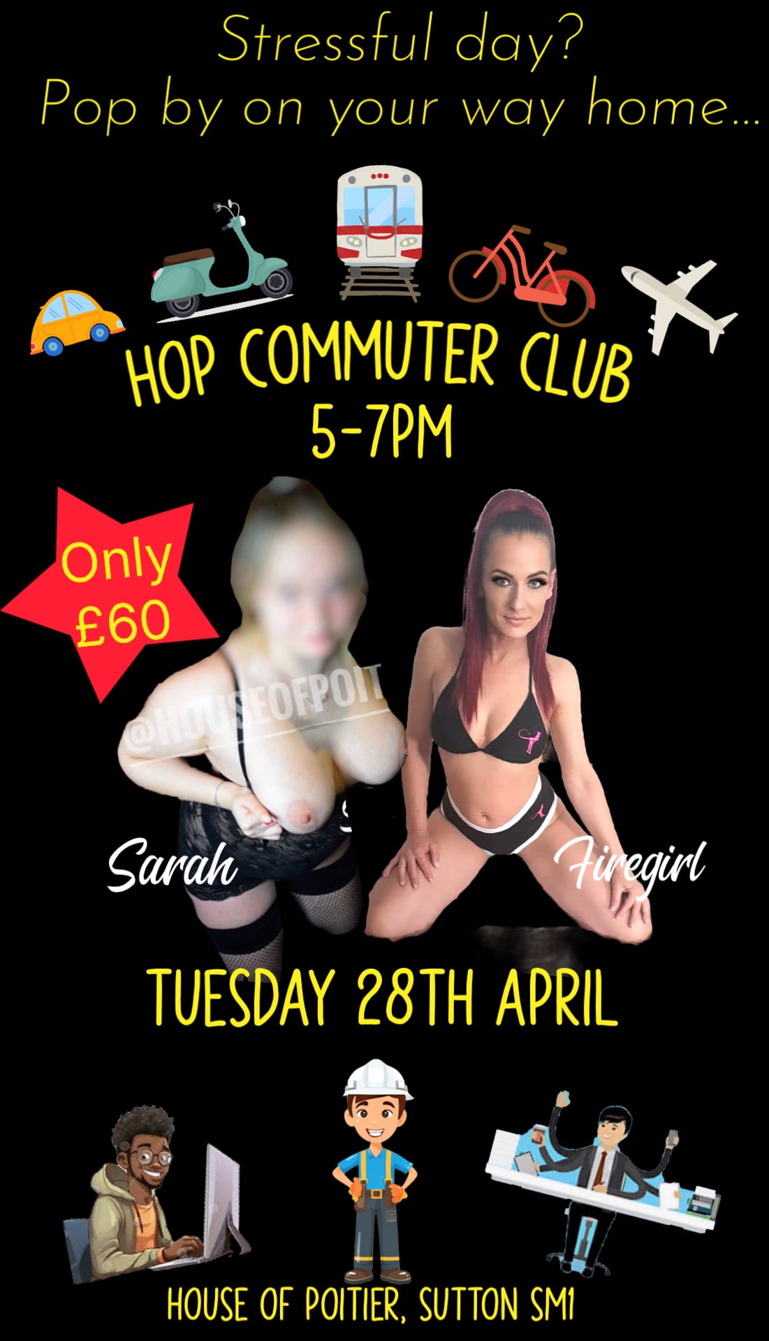 Had my 1st visit as a punter today to House of Poitier for Commuter Club. Two fun girls, the right number of guys, relaxed friendly atmosphere. Even a bukkake to finish. Great value for money. Def going again. Highly recommended.